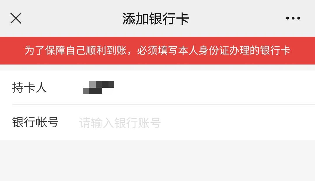①为了保障顺利到账,请大家填写本人身份证办理的银行卡;