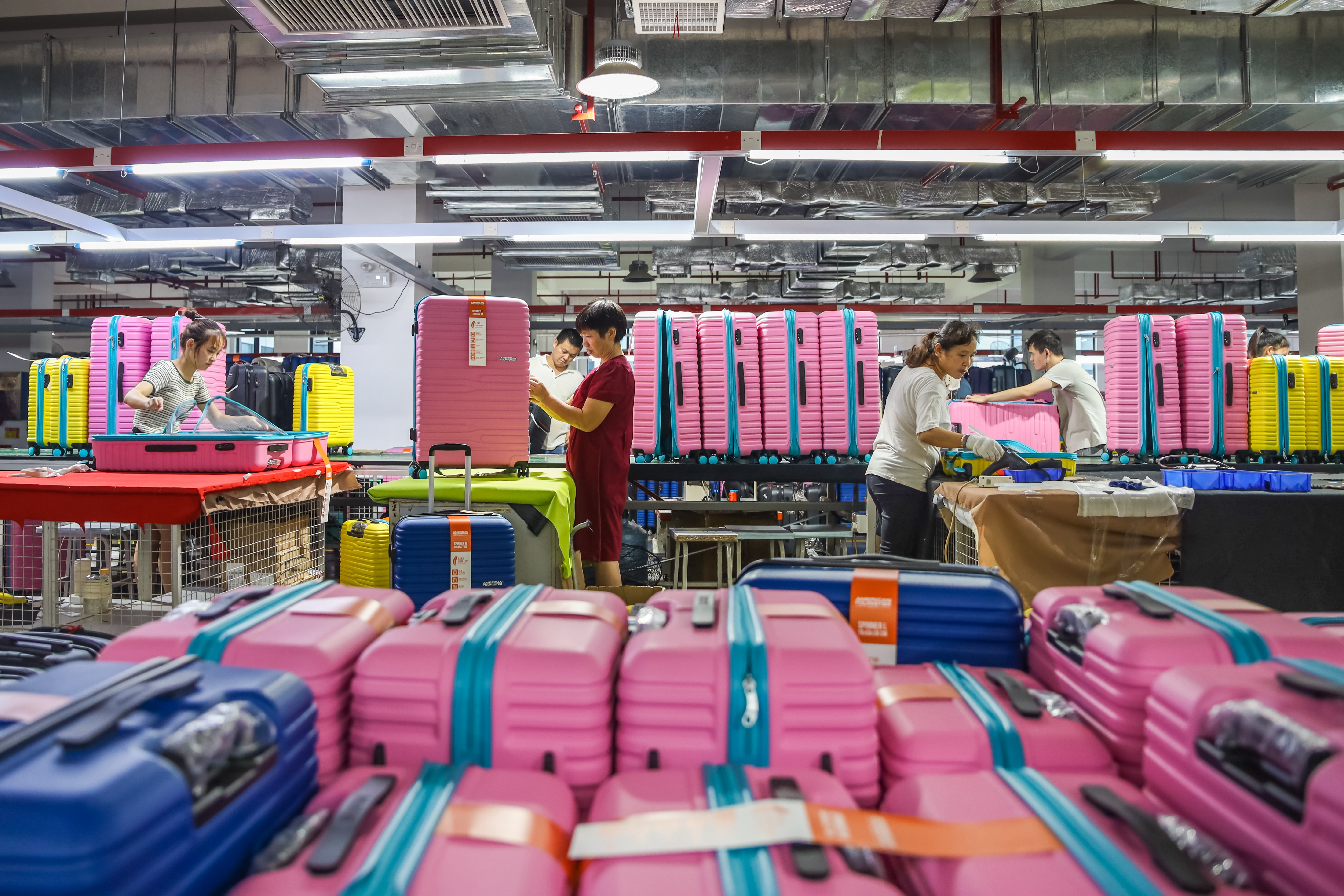 包装工的累,首先累在 “重复” 二字上。每天的活儿逃不开检查拉链顺不顺、套防尘袋、贴标签、装箱这几样,看起来简单,却要重复上千次。给大行李箱套袋时得弯腰搬起,给小背包贴标签时要低头对准位置,一天下来手腕发酸、腰有点僵是常事。遇到订单赶工期,传送带不停转,眼睛盯着流水线上的箱包,连喝水都得小跑着去,老员工说 “忙起来脚底板都磨出茧子”。